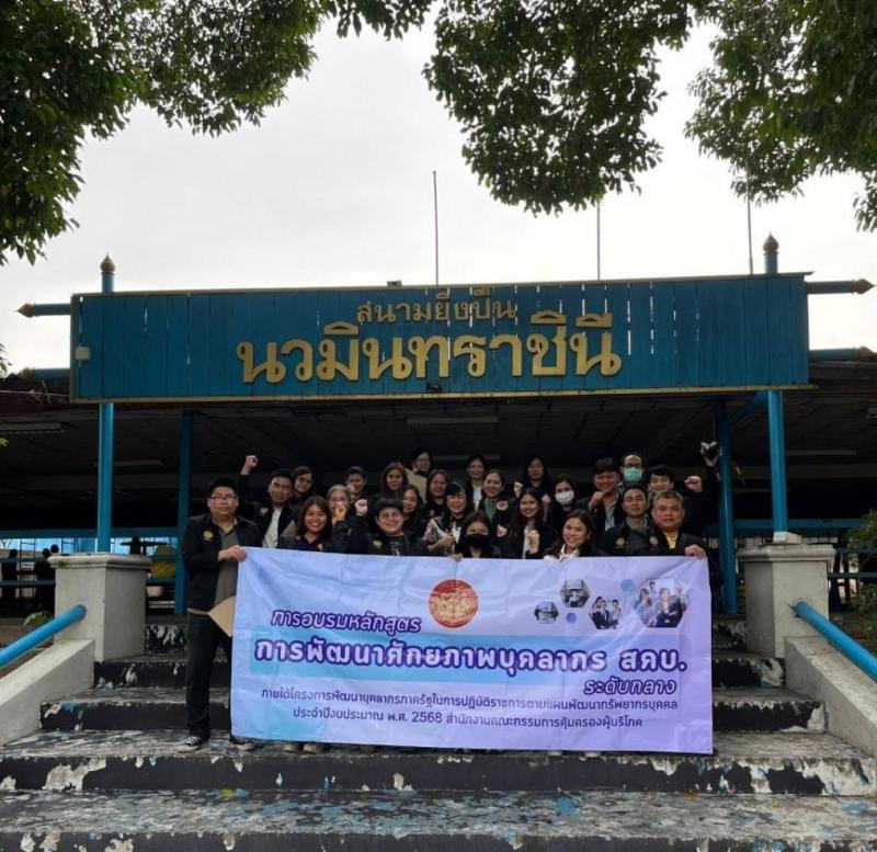 นายศุภกิตติ์ มะลิ เลขานุการกรม เป็นประธานในพิธีเปิดการอบรมหลักสูตรพัฒนาศักยภาพบุคลากร สคบ. (ระดับกลาง) ภายใต้โครงการพัฒนาบุคลากรภาครัฐในการปฏิบัติราชการตามแผนพัฒนาทรัพยากรบุคคล โดยส่วนพัฒนาทรัพยากรบุคคล สำนักงานเลขานุการกรม ได้กำหนดจัดการอบรมดังกล่าว แบ่งเป็น 2 ช่วง คือ (ช่วงที่ 1) ในระหว่างวันที่ 24 – 26 กุมภาพันธ์ 2568 (ช่วงที่ 2) ในระหว่างวันที่ 10 – 11 มีนาคม 2568 และพิธีปิดหลักสูตรฯ ในวันที่ 17 มีนาคม 2568 ซึ่งภายใต้การอบรมดังกล่าว ช่วงที่ 1 ได้จัดให้มีการอบรมเกี่ยวกับการใช้อาวุธปืนเบื้องต้น ณ สนามยิงปืนนวมินทราชินี จังหวัดชลบุรี การอบรมเกี่ยวกับทักษะภาวะผู้นำ โดยวิทยากรจากสถาบัน DS Johnson Development ณ โรงแรมแคนทารี เบย์ ศรีราชา จังหวัดชลบุรี และการทำกิจกรรมเรียนรู้วิถีชุมชน  ณ วิสาหกิจชุมชนท่องเที่ยวตำบลตะเคียนเตี้ย ทั้งนี้ เพื่อพัฒนาบุคลากรให้มีความพร้อมต่อการเป็นหัวหน้าทีม ทักษะด้านการสื่อสารและประสานงานที่มีประสิทธิภาพ และเสริมสร้างความสามัคคี คุณธรรม จริยธรรมและจิตสำนึกต่อต้านการทุจริต ตลอดจนได้ศึกษาศาสตร์พระราชาและนำแนวทางไปสู่การประยุกต์ใช้ในการปฏิบัติงาน
