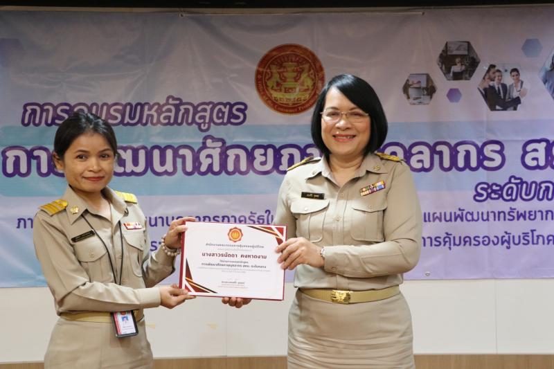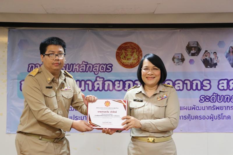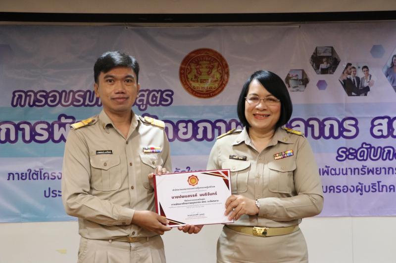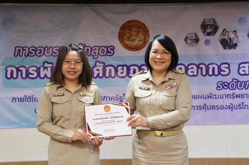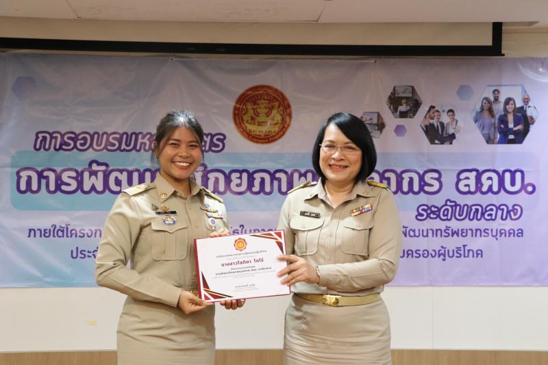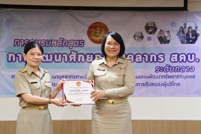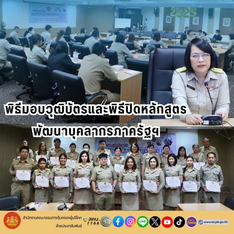 วันจันทร์ที่ 17 มีนาคม 2568 เวลา 09.00 น. นางสาวทรงศิริ จุมพล รองเลขาธิการคณะกรรมการคุ้มครองผู้บริโภค รักษาราชการแทนเลขาธิการคณะกรรมการคุ้มครองผู้บริโภค ประธานในพิธีปิดการอบรมหลักสูตรพัฒนาศักยภาพบุคลากร สคบ. (ระดับกลาง) ภายใต้โครงการพัฒนาบุคลากรภาครัฐในการปฏิบัติราชการตามแผนพัฒนาทรัพยากรบุคคล พร้อมมอบวุฒิบัตรให้แก่ ข้าราชการระดับชำนาญการ ทั้งนี้ รองเลขาธิการฯ ได้กล่าวให้โอวาทต่อผู้สำเร็จการอบรมให้มีความพร้อม ความตั้งใจในการปฏิบัติงาน และนำความรู้ที่ได้รับไปประยุกต์ในการทำงานต่อไป ณ ห้องประชุม 5 สคบ. กรุงเทพฯ