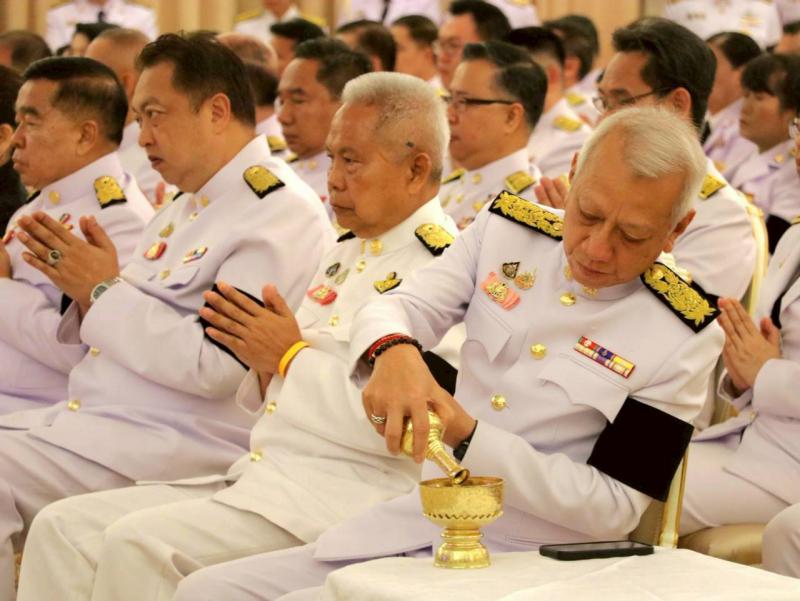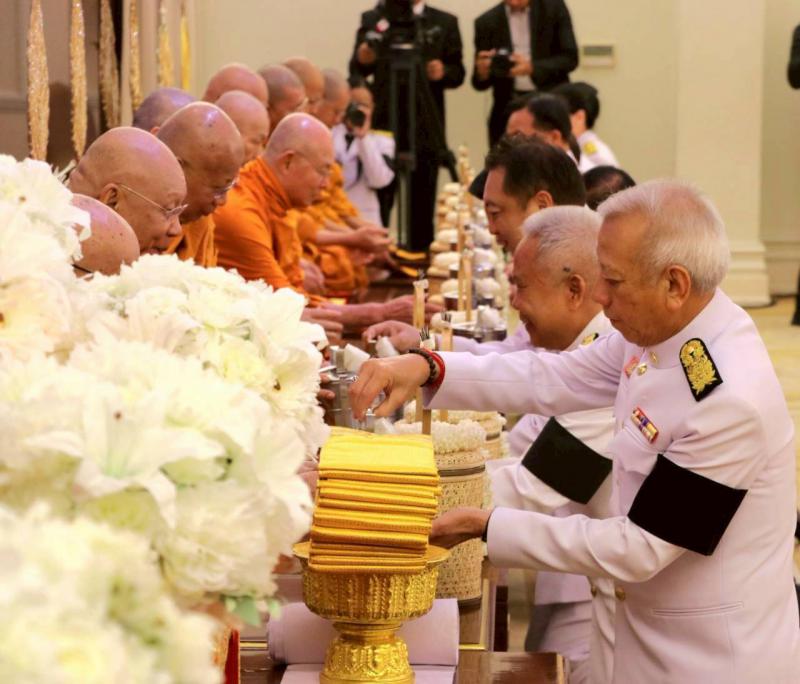 โดยมี สมเด็จพระพุฒาจารย์ เจ้าอาวาสวัดไตรมิตรวิทยาราม เจ้าคณะใหญ่หนตะวันออก เป็นประธานฝ่ายสงฆ์ นายพิพัฒน์ รัชกิจประการ รองนายกรัฐมนตรี และรัฐมนตรีว่าการกระทรวงคมนาคม ปฏิบัติหน้าที่แทนนายกรัฐมนตรี เป็นประธานฝ่ายฆราวาส ในพิธีฯ มีคณะรัฐมนตรี หัวหน้าส่วนราชการในสังกัดสำนักนายกรัฐมนตรี ข้าราชการ และเจ้าหน้าที่หน่วยงานในทำเนียบรัฐบาล เข้าร่วมพิธีโดยพร้อมเพรียง