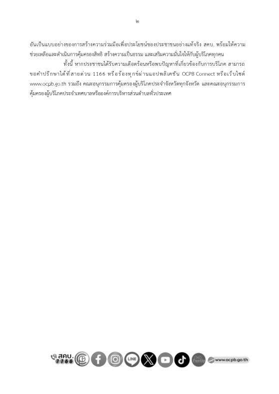 อันเป็นแบบอย่างของการสร้างความร่วมมือเพื่อประโยชน์ของประชาชนอย่างแท้จริง สคบ. พร้อมให้ความช่วยเหลือและดำเนินการคุ้มครองสิทธิ สร้างความเป็นธรรม และเสริมความมั่นใจให้กับผู้บริโภคทุกคน