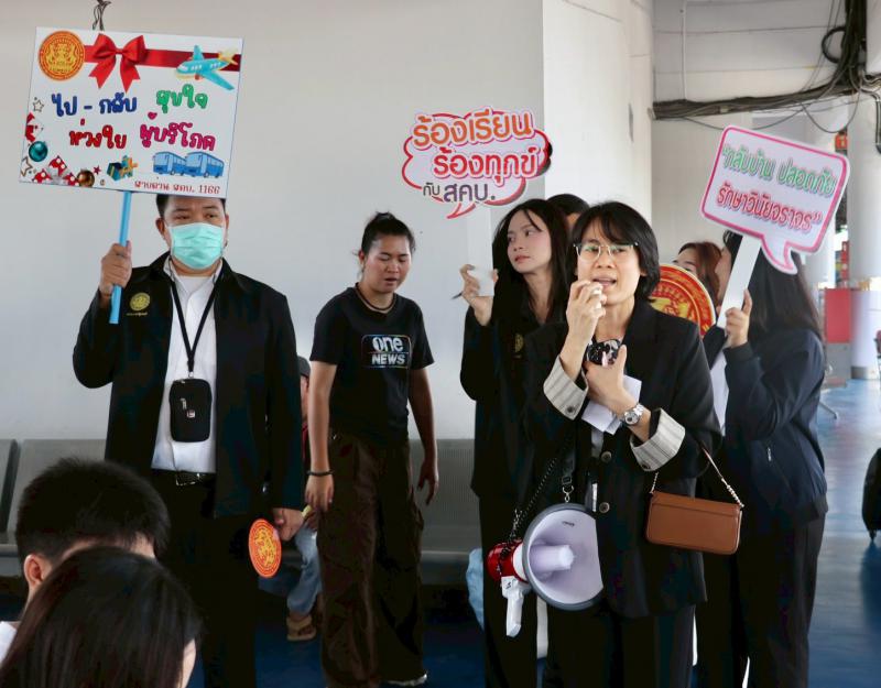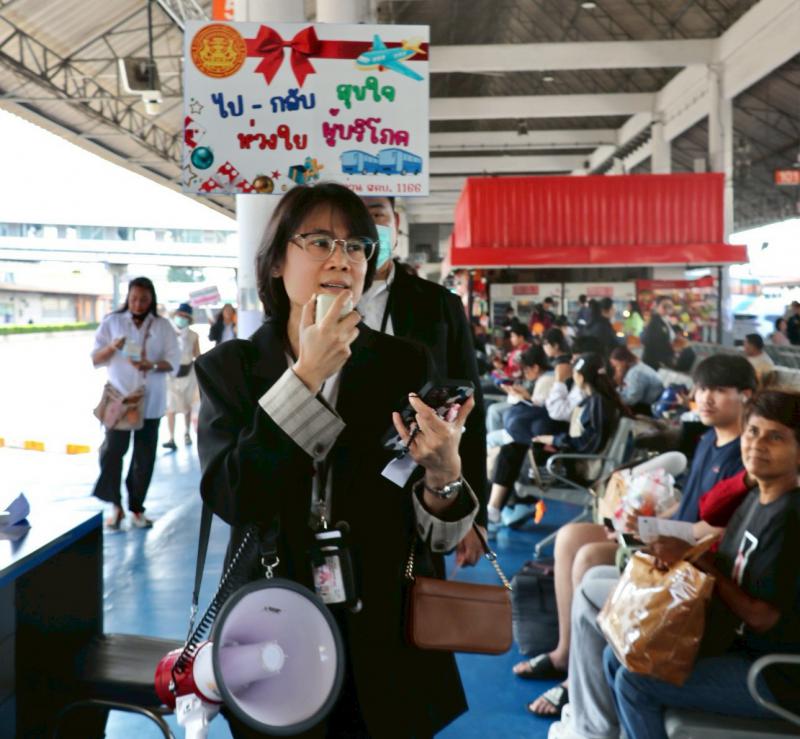 สคบ. ห่วงใยผู้บริโภค เดินหน้าแคมเปญ “ไป – กลับสุขใจ ท่องเที่ยวอุ่นใจตลอดเทศกาลปีใหม่” มุ่งรณรงค์ดูแลความปลอดภัยและสิทธิของผู้บริโภคที่ใช้บริการรถโดยสารประจำทาง ณ สถานีขนส่งผู้โดยสารกรุงเทพ (หมอชิต)