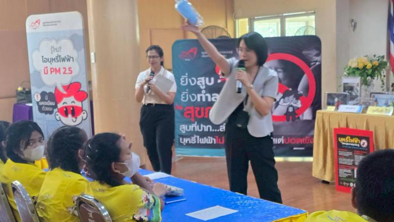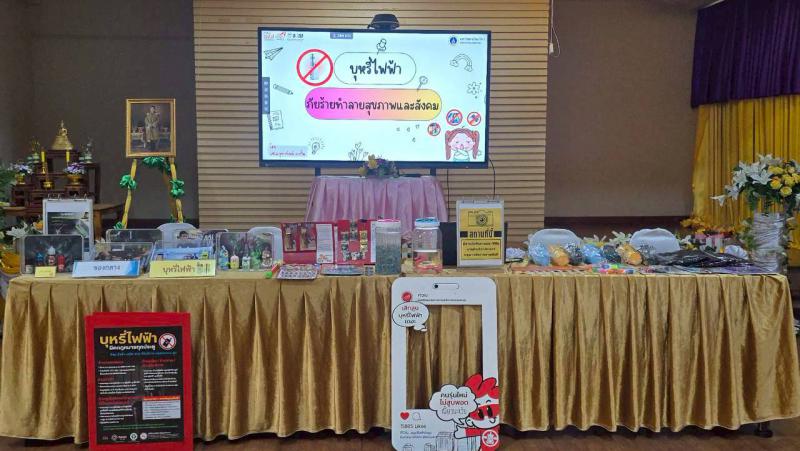 โดยได้รับเกียรติจากวิทยากรผู้ทรงคุณวุฒิ อาจารย์จุฑาทิพย์ คงปั้น คณะสาธารณสุขศาสตร์ มหาวิทยาลัยมหิดล และ นางธนนันต์ อติชาติพงศ์กุล นักสืบสวนสอบสวน กองคุ้มครองผู้บริโภค 2 สคบ. บรรยายให้ความรู้เกี่ยวกับพิษภัย อันตราย ข้อกฎหมาย บทลงโทษ ที่เกี่ยวข้องบุหรี่ไฟฟ้า ให้แก่ นักเรียน รวมถึงครู อาจารย์ และเจ้าหน้าที่ ให้รู้เท่าทัน มีความเข้าใจ ไม่ให้หลงผิดเข้าไปเกี่ยวข้องกับบุหรี่ไฟฟ้า ทั้งในส่วนของการครอบครอง การจำหน่าย และการให้บริการ รวมถึงความรู้เกี่ยวกับสินค้าอันตรายและสิทธิผู้บริโภคเบื้องต้น อันจะเป็นการพัฒนาความรู้และคุณภาพชีวิตแก่เยาวชน ซึ่งส่งผลถึงปัญหาต่าง ๆ ในครอบครัวและสังคม พร้อมการเล่นเกมส์ชิงของรางวัล โดยมีนักเรียนและครูเข้าร่วมประมาณ 100 คน