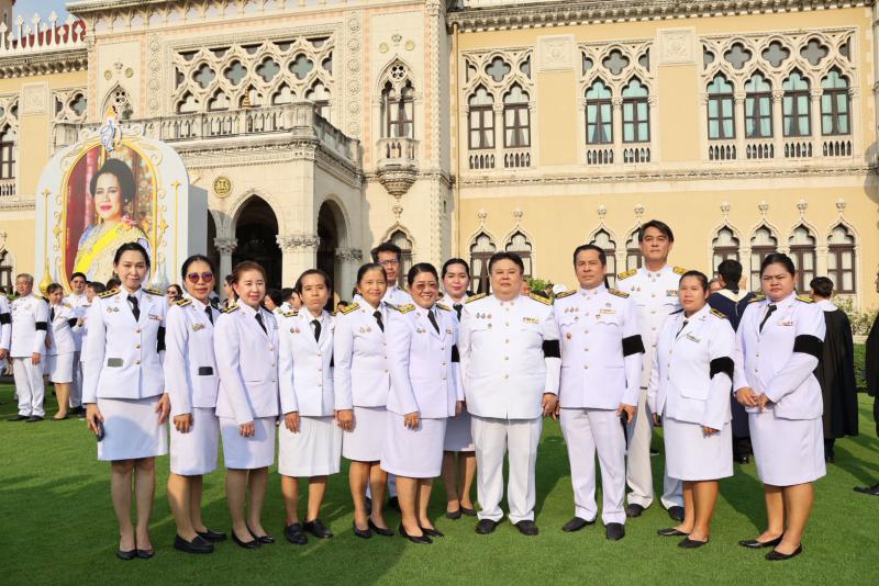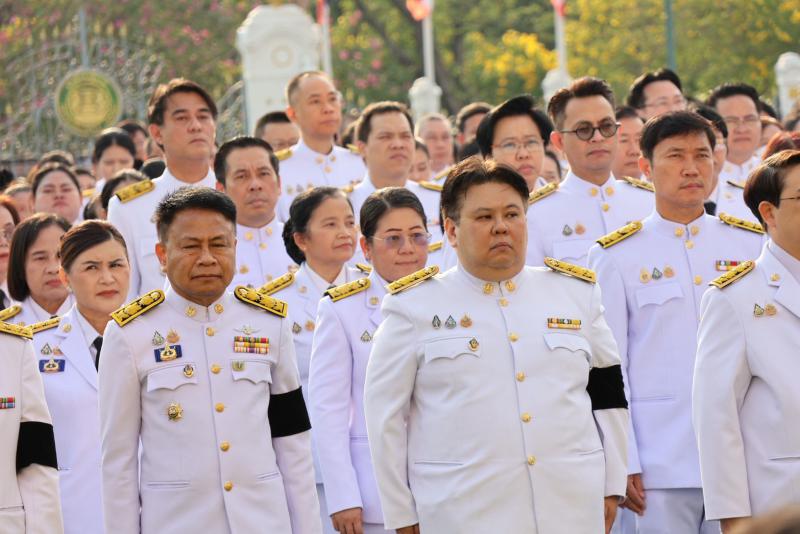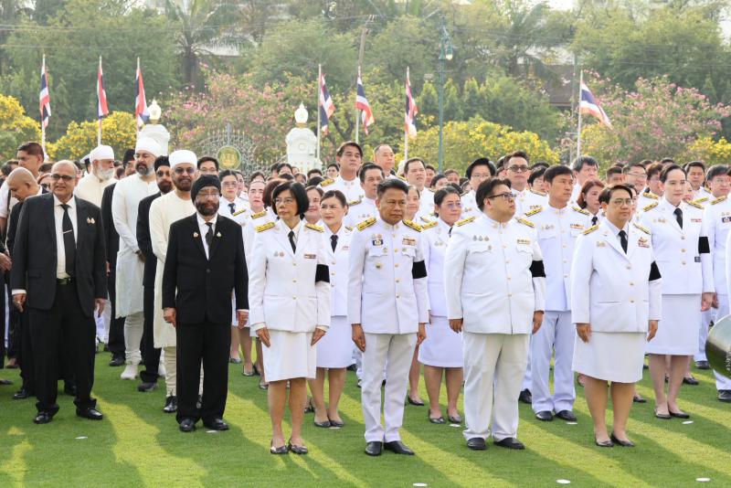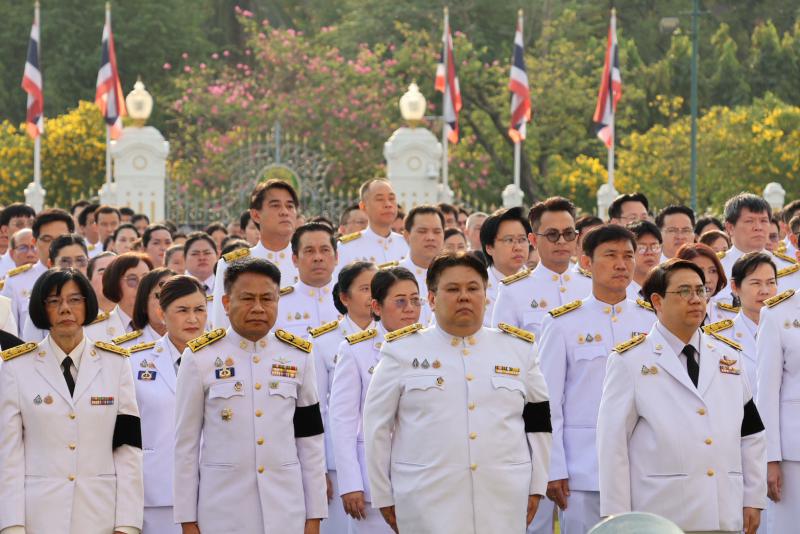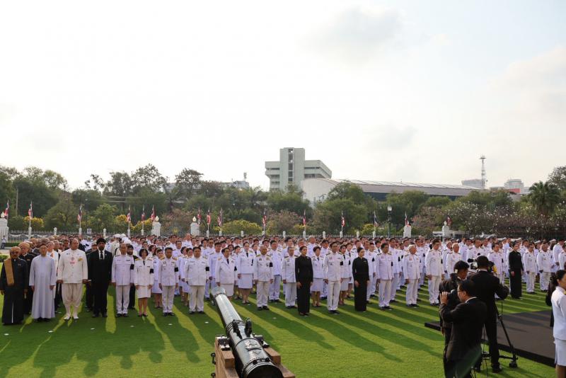 หัวหน้าส่วนราชการในสังกัดสำนักนายกรัฐมนตรี ข้าราชการ และเจ้าหน้าที่หน่วยงานในทำเนียบรัฐบาล เข้าร่วมพิธีโดยพร้อมเพรียง