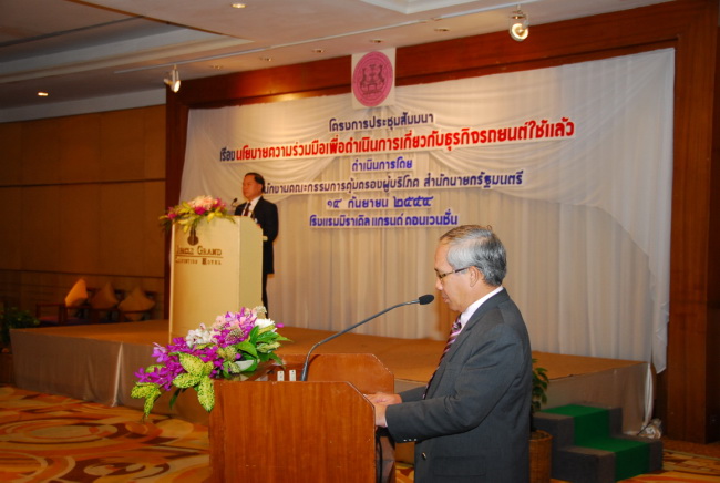 รัฐมนตรีประจำสำนักนายกรัฐมนตรี (นายสุรวิทย์ คนสมบูรณ์) ประธานกรรมการคุ้มครองผู้บริโภค เป็นประธานเปิดการประชุมสัมมนาเรื่อง "นโยบายความร่วมมือเพื่อดำเนินการเกี่ยวกับธุรกิจขายรถยนต์ใช้แล้ว" 14 ก.ย 2554