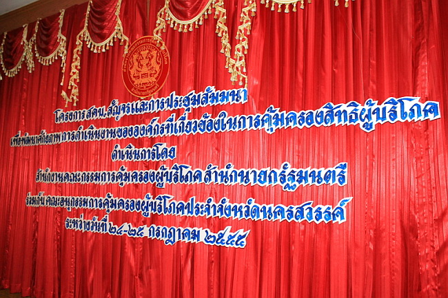 25 กรกฎาคม 2555 สคบ.ร่วมกับคณะอนุกรรมการคุ้มครองผู้บริโภคประจำจังหวัดนครสวรรค์ ร่วมประชุมสัมมนาเชิงปฎิบัติการเพื่อพัฒนาศักยภาพการดำเนินงานขององค์กรที่เกี่ยวข้องในการคุ้มครองสิทธิผู้บริโภค โดยมีผู้ว่าราชการจังหวัดนครสวรรค์ (นายปรีชา เรืองจันทร์) เป็นประธานเปิดงาน