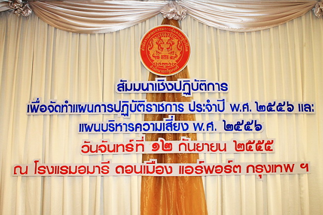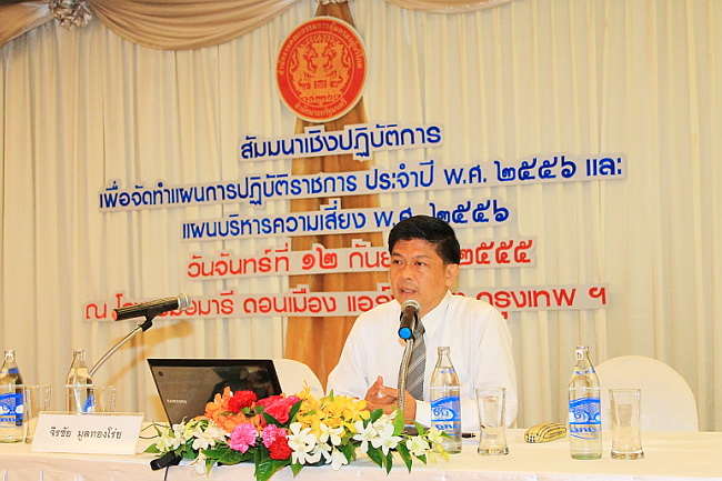 12 กันยายน 2555 "สัมมนาจัดทำแผนการปฏิบัติราชการ และแผนบริหารความเสี่ยง” นายจิรชัย มูลทองโร่ย เลขาธิก ...
