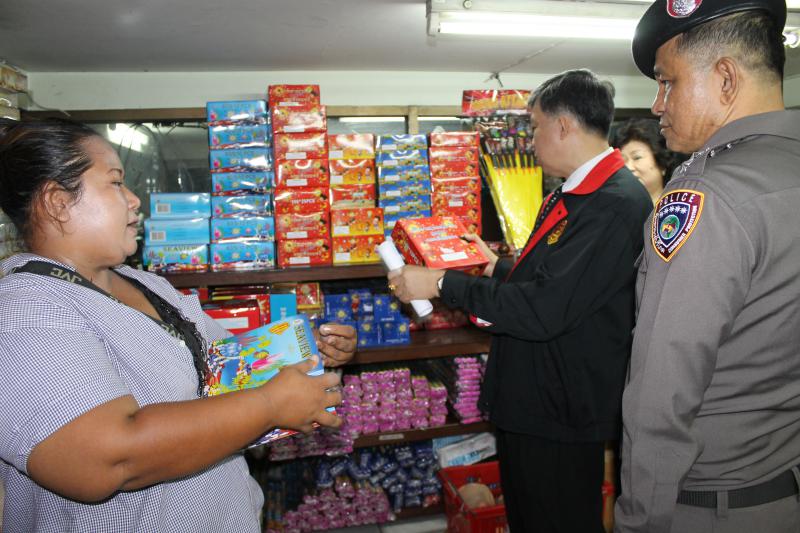 (บก.ปคบ.) ออกตรวจสอบแหล่งผลิตและค้าส่ง ป้องปรามการจำหน่ายที่ไม่ถูกกฎหมาย พร้อมรณรงค์ให้ผู้บริโภคเล่นดอกไม้เพลิงอย่างถูกวิธีและปลอดภัย ณ บริเวณเสาชิงช้า กรุงเทพมหานคร