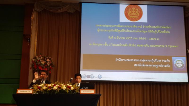 วันที่ 6 มีนาคม 2557 นายอำพล วงศ์ศิริ เลขาธิการคณะกรรมการคุ้มครองผู้บริโภคเป็นประธานในการสัมมนา