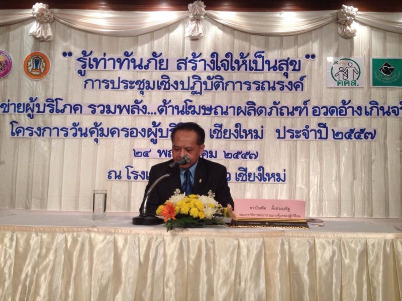 เนื่องในวันคุ้มครองผู้บริโภค เชียงใหม่ 2557 ณ โรงแรมเมอร์เคียว จังหวัดเชียงใหม่ ทั้งนี้เพื่อสร้างความเข้มแข็งให้กับ