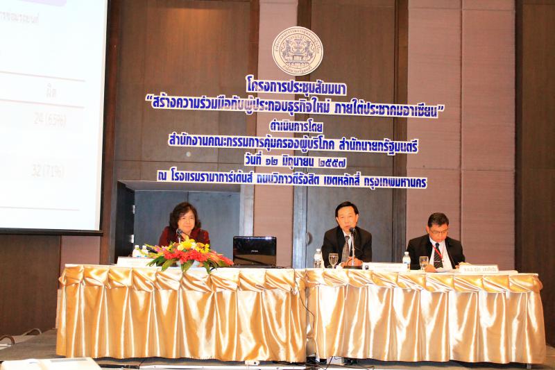 วันที่ 12 มิถุนายน 2557 นายสุทธิศักดิ์ ภัทรมานะวงศ์ รองเลขาธิการคณะกรรมการคุ้มครองผู้บริโภค เป็นประธานเปิดโครงการประชุมสัมมนา "สร้างความร่วมมือกับผู้ประกอบธุรกิจใหม่ ภายใต้ประชาคมอาเซียน” ณ โรงแรมรามาการ์เด้นส์ ถนนวิภาวดีรังสิต เขตหลักสี่ กรุงเทพมหานคร ทั้งนี้เพื่อ เป็นการแก้ไขปัญหา และป้องกันมิให้ผู้บริโภคถูกเอารัดเอาเปรียบในการทำสัญญากับผู้ประกอบธุรกิจตาม พระราชบัญญัติคุ้มครองผู้บริโภคฯ