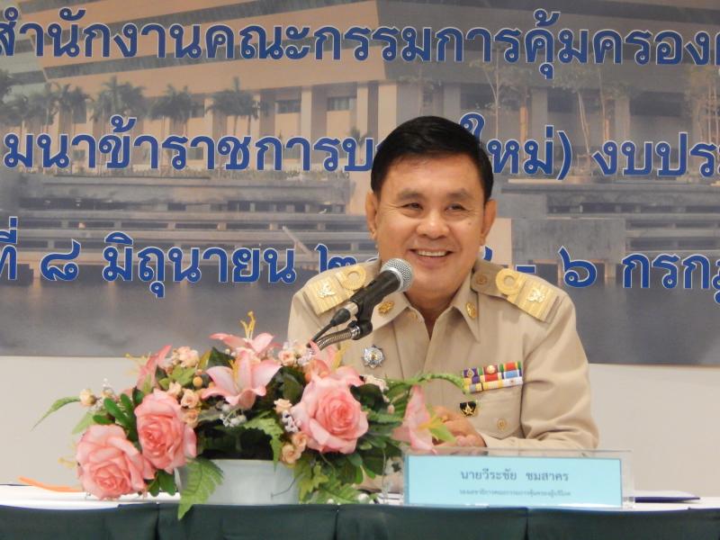 วันที่ 8 มิถุนายน 2558 นายวีระชัย ชมสาคร รองเลขาธิการคณะกรรมการคุ้มครองผู้บริโภค กล่าวให้โอวาท ข้าราชการและพนักงานราชการบรรจุใหม่ พร้อมบรรยายพิเศษ "ปรัชญาการเป็นข้าราชการ” ในโครงการการอบรมสัมมนาร่วมกัน "หลักสูตรการเป็นข้าราชการที่ดี” ของ สคบ. ระหว่างวันที่ 8 มิถุนายน – 6 กรกฎาคม 2558 (ระยะเวลา 21 วัน) ณ ห้องประชุม BM-5-02 ชั้น 5 สคบ.