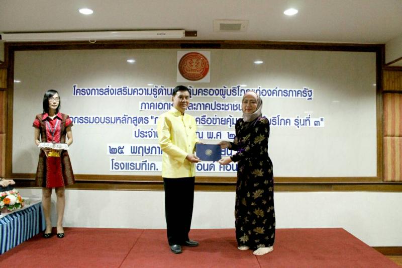 สคบ.มอบประกาศนียบัตรผู้เข้ารับการอบรม หลักสูตร "การพัฒนาเครือข่ายคุ้มครองผู้บริโภค รุ่นที่ 3"