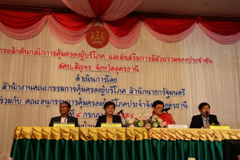 สำนักงานคณะกรรมการคุ้มครองผู้บริโภค จัดทำโครงการผลักดันกลไกการคุ้มครองผู้บริโภคและส่งเสริมการมีส่วนร่วมของประชาชน สคบ. สัญจรจังหวัดอุดรธานี โดยร่วมกับทำงานประจำจังหวัด ลงพื้นที่ตรวจสอบและให้ความรู้แก่ผู้ประกอบธุรกิจในจังหวัดขอนแก่น อำนาจเจริญ อุดรธานี ในระหว่างวันที่ 6– 9 กรกฎาคม 2558 เพื่อปฏิบัติให้ถูกต้องตามพระราชบัญญัติคุ้มครองผู้บริโภคฯ ด้านโฆษณา ฉลากสินค้า สัญญา รวมทั้งด้านขายตรงและตลาดแบบตรง และในวันที่ 9 กรกฎาคม 2558 จัดให้มีการประชุมสัมมนาให้ความรู้เรื่องการคุ้มครองผู้บริโภคแก่ กำนัน ผู้ใหญ่บ้าน เครือข่ายประชาชน เพื่อให้เข้ามามีส่วนร่วมในการคุ้มครองสิทธิผู้บริโภคในการรับเรื่องราวร้องทุกข์จากผู้บริโภคผ่านเครือข่ายกำนัน ผู้ใหญ่บ้าน เทศบาล อบต. ด้วย "โปรแกรมประยุกต์ (Application) รับเรื่องราวร้องทุกข์จากผู้บริโภคออนไลน์” ซึ่งจะเป็นการอำนวยความสะดวกให้แก่ประชาชนที่ถูกละเมิดสิทธิผู้บริโภค