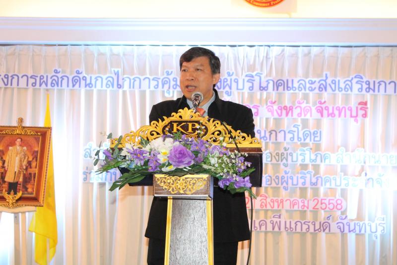 วันที่ 21 สิงหาคม 2558 นายสามารถ ลอยฟ้า ผู้ว่าราชการจังหวัดจันทบุรี เป็นประธานในพิธีเปิดโครงการผลักดันกลไกการคุ้มครองผู้บริโภคและส่งเสริมการมีส่วนร่วมของประชาชน สคบ. สัญจรจังหวัดจันทบุรี โดยมีร้อยตรีไพโรจน์ คนึงทรัพย์ เลขานุการกรม กล่าวรายงานวัตถุประสงค์ของการจัดโครงการฯ นายอำพล วงศ์ศิริ เลขาธิการคณะกรรมการคุ้มครองผู้บริโภค ขึ้นกล่าวปาฐกถาพิเศษ เรื่อง นโยบายการคุ้มครองผู้บริโภคระดับประเทศ ณ โรงแรมเคพี แกรนด์ จันทบุรี มีผู้เข้าร่วมประชุมสัมมนาจากทุกภาคส่วนกว่า 600 คน