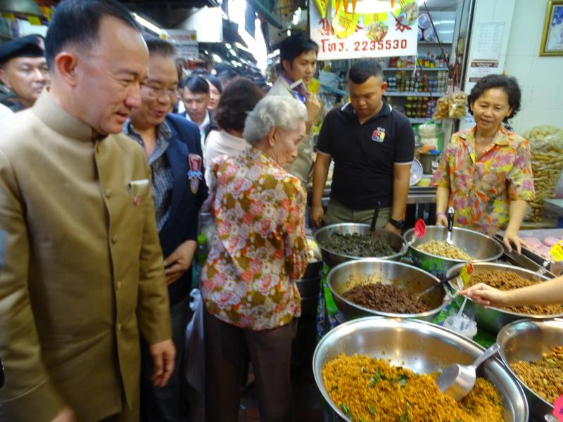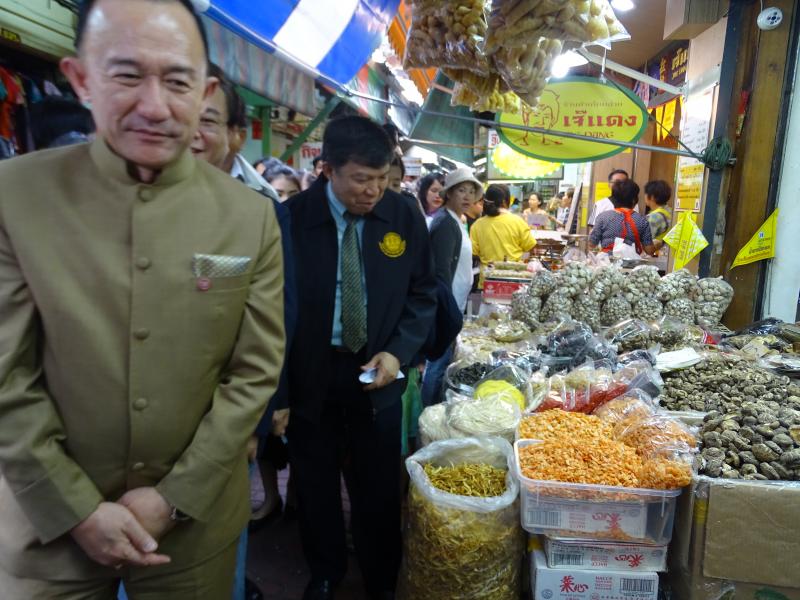 ประธานกรรมการคุ้มครองผู้บริโภค พร้อมด้วยนายอำพล วงศ์ศิริ เลขาธิการคณะกรรมการคุ้มครองผู้บริโภค ร่วมด้วยเจ้าหน้าที่จากหน่วยงานที่เกี่ยวข้อง อาทิ กองบังคับการปราบปรามการกระทำความผิดเกี่ยวกับการคุ้มครองผู้บริโภค กรมการค้าภายใน สำนักงานคณะกรรมการอาหารและยา สำนักงานเขตสัมพันธวงศ์ สภาวัฒนธรรมเขตสัมพันธ์วงศ์ ร่วมตรวจเยี่ยมผู้ประกอบการที่จำหน่ายอาหารเจในช่วงเทศกาลกินเจ เพื่อแนะนำให้ผู้ประกอบการแสดงราคาสินค้าให้ผู้บริโภคเห็นอย่างชัดเจน ณ ตลาดสดเยาวราช (ตลาดเก่า) เขตสัมพันธวงศ์ กรุงเทพมหานคร