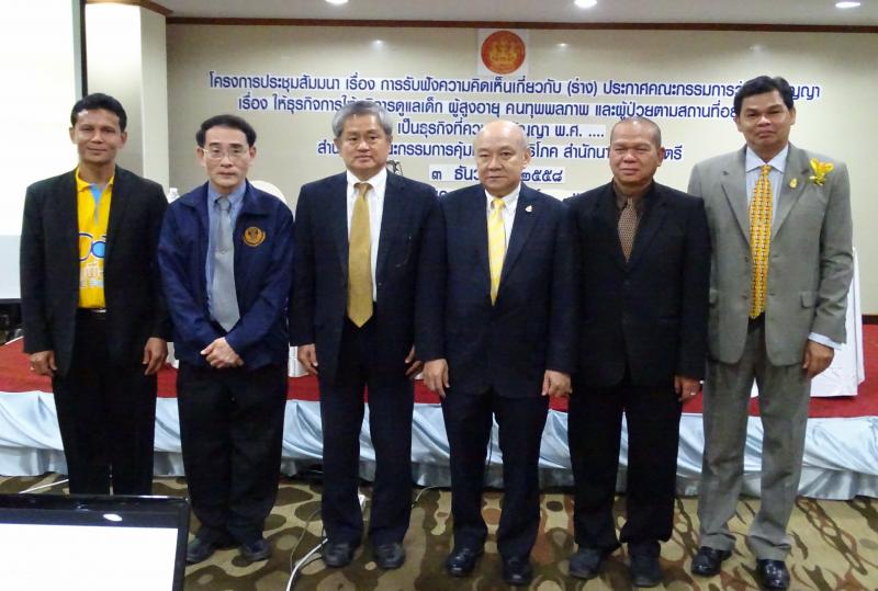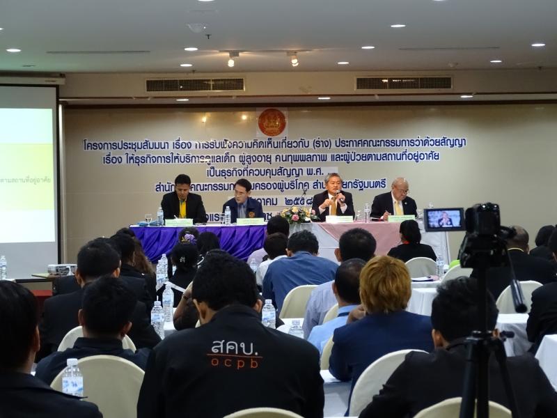 วันที่ 3 ธันวาคม 2558 เลขาธิการคณะกรรมการคุ้มครองผู้บริโภค มอบหมายให้นายธสรณ์อัฑฒ์ ธนิทธิพันธ์ ผู้อำนวยการสำนักแผนและการพัฒนาการคุ้มครองผู้บริโภค เป็นประธานเปิดโครงการประชุมสัมมนา เรื่อง "การรับฟังความคิดเห็นเกี่ยวกับ (ร่าง) ประกาศคณะกรรมการว่าด้วยสัญญา เรื่อง ให้ธุรกิจการให้บริการดูแลเด็ก ผู้สูงอายุ คนทุพพลภาพ และผู้ป่วยตามสถานที่อยู่อาศัยเป็นธุรกิจ ที่ควบคุมสัญญา พ.ศ. ...” ณ โรงแรม ทีเค พาเลซ ถนนแจ้งวัฒนะ กรุงเทพมหานคร