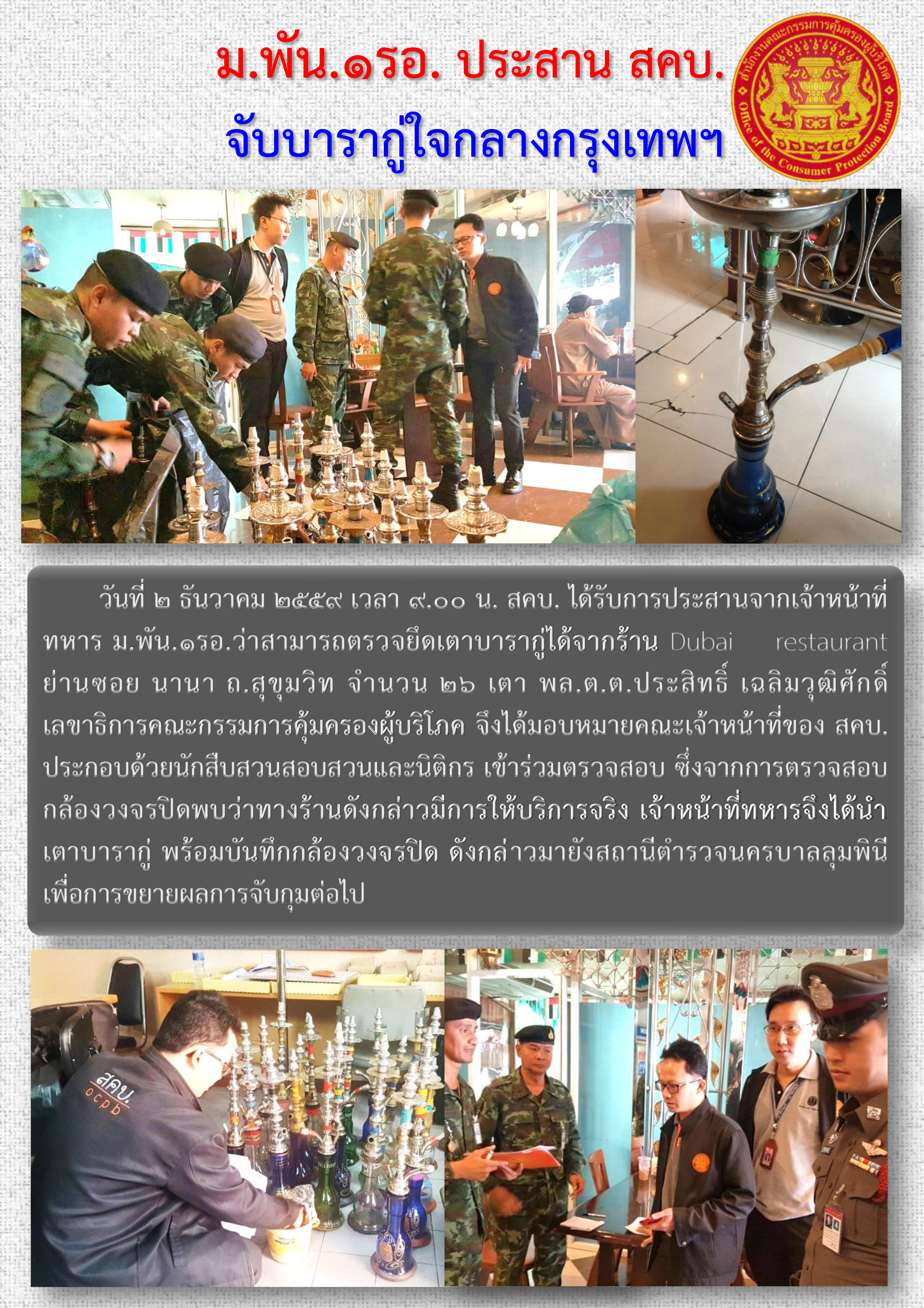 ม.พัน.๑รอ. ประสาน สคบ. จับบารากู่ใจกลางกรุงเทพฯ