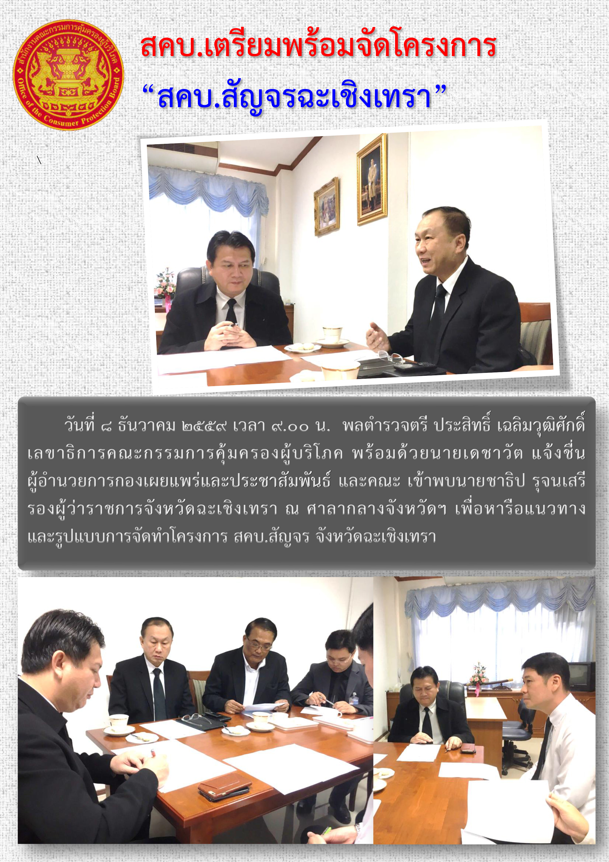 สคบ.เตรียมความพร้อมจัดโครงการ "สคบ.สัญจรฉะเชิงเทรา"