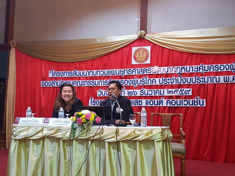 เมื่อวันที่ ๒๖ ธันวาคม ๒๕๕๙ เวลา ๐๙.๐๐ น. เลขาธิการคณะกรรมการคุ้มครองผู้บริโภค มอบหมายให้นายธสรณ์อัฑฒ์ ธนิทธิพันธ์ ผู้อำนวยการกองกฎหมายและคดี เป็นประธานในพิธีเปิดโครงการสัมมนาทบทวนแผนยุทธศาสตร์พัฒนากฎหมายคุ้มครองผู้บริโภคของสำนักงานคณะกรรมการคุ้มครองผู้บริโภค ประจำปีงบประมาณ พ.ศ. ๒๕๖๐ โดยมีนายพัสกร ทัพมงคล นิติกรชำนาญการพิเศษ กล่าวรายงาน ซึ่งภายในงานดังกล่าวมีการอภิปรายในหัวข้อ "แผนยุทธศาสตร์การพัฒนากฎหมายคุ้มครองผู้บริโภคของสำนักงานคณะกรรมการคุ้มครองผู้บริโภค พ.ศ. ๒๕๕๙-๒๕๖๒" โดยวิทยากรจากสำนักงานคณะกรรมการคุ้มครองผู้บริโภคนางสาวจารวี ยั่งยืน นักวิเคราะห์นโยบายและแผนชำนาญการ กลุ่มพัฒนาระบบบริหาร และนายปนิธาน ช่อผูก นิติกรชำนาญการ ณ โรงแรมทีเค. พาเลซ แกรนด์ คอนเวนชั่น เขตหลักสี่ กรุงเทพฯ
