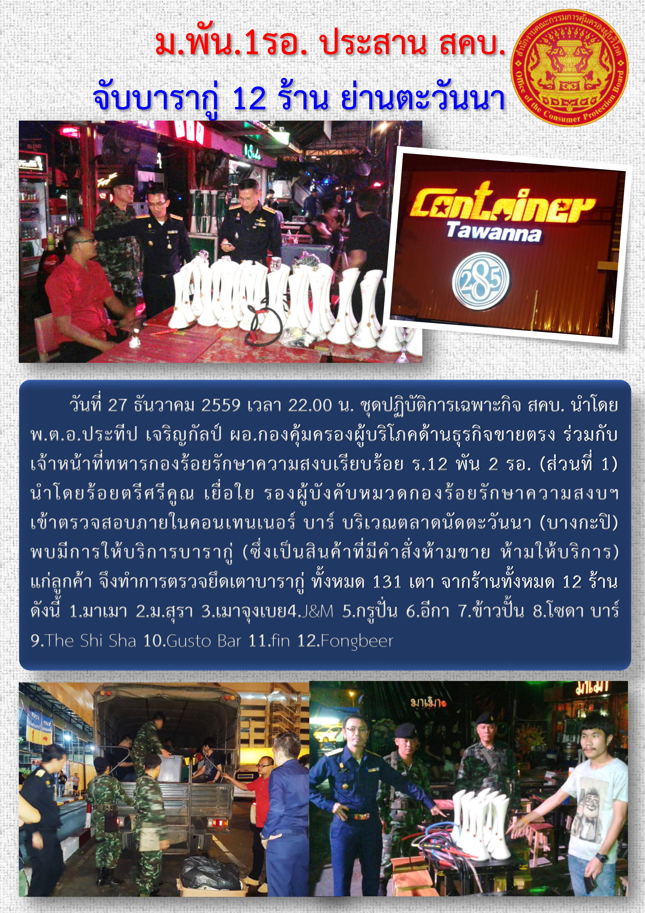 ม.พัน.1รอ.ประสาน สคบ. จับบารากุ่ 12 ร้าน ย่านตะวันนา