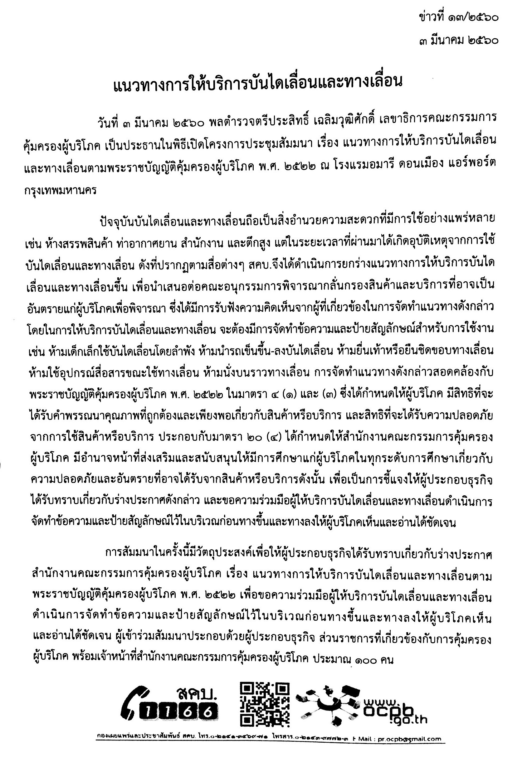 แนวทางการให้บริการบันไดเลื่อนและทางเลื่อน