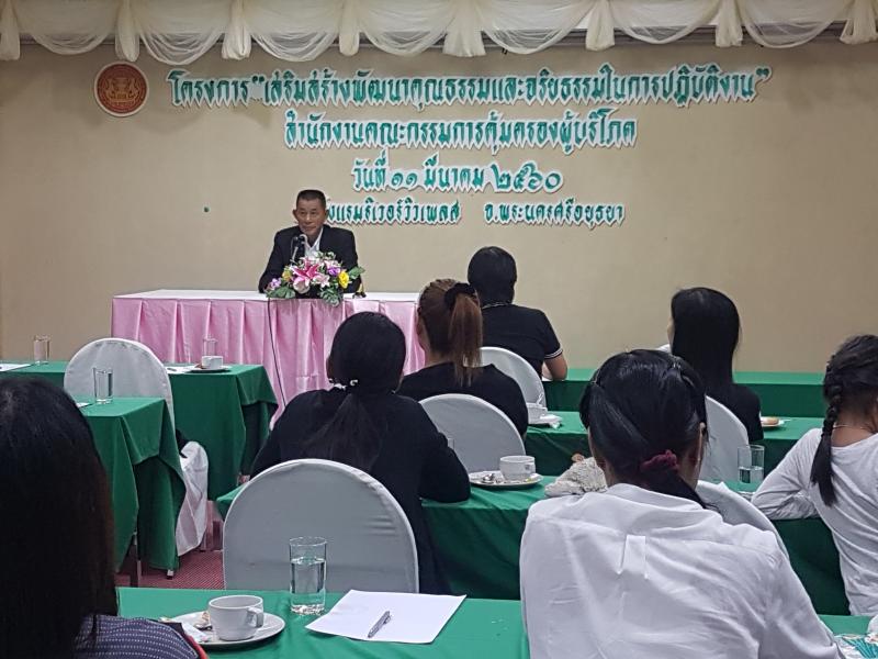 และจริยธรรมในการปฏิบัติงาน" เพื่อให้บุคลากรสำนักงานคณะกรรมการคุ้มครองผู้บริโภคตระหนักถึงคุณธรรมและจริยธรรมในการปฏิบัติงาน