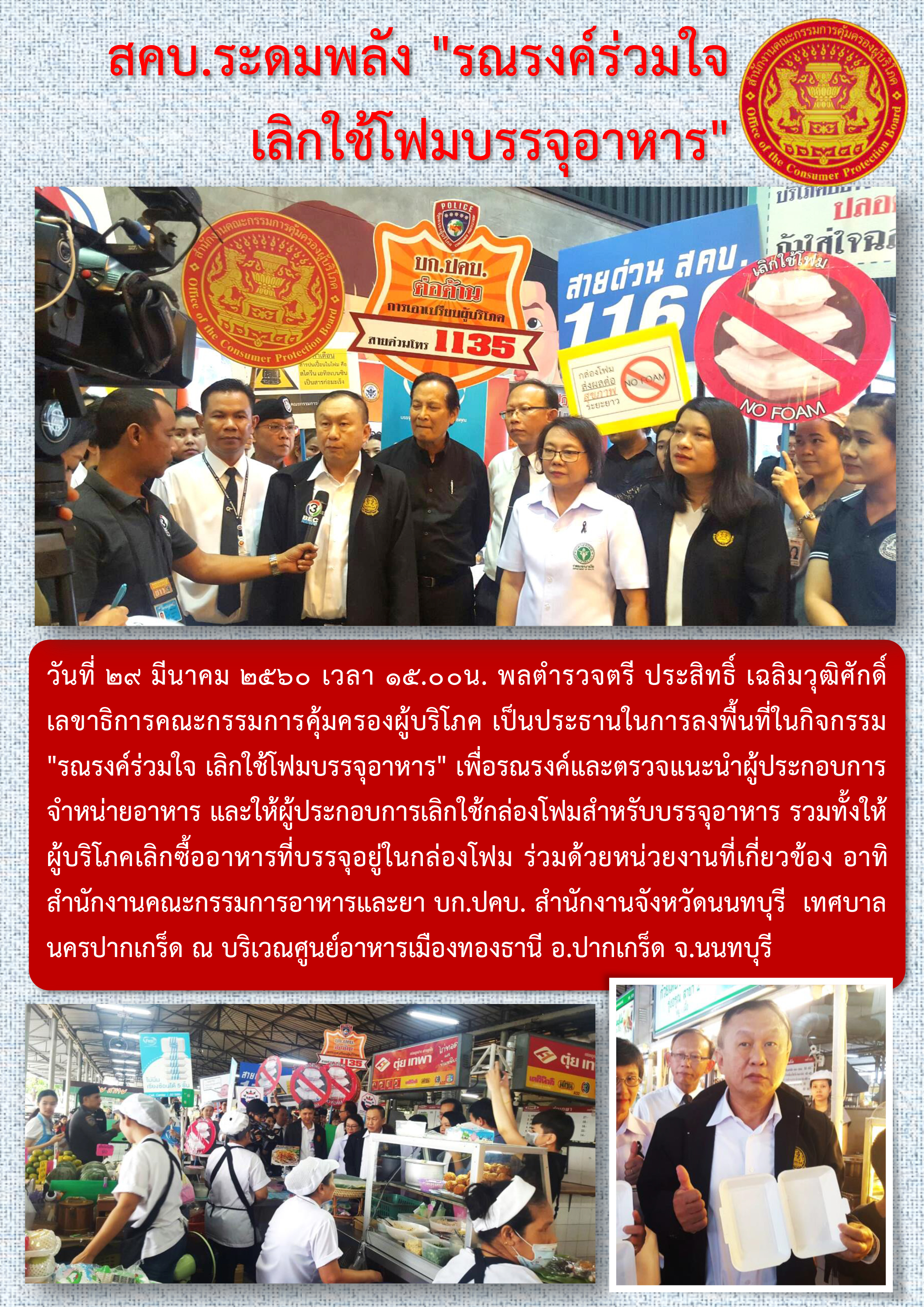 สคบ.ระดมพลัง "รณรงค์ร่วมใจ เลิกใช้โฟมบรรจุอาหาร"