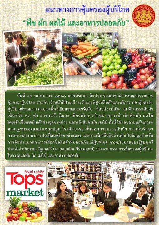 แนวทางการคุ้มครองผู้บริโภค "พืช ผัก ผลไม้ และอาหารปลอดภัย"