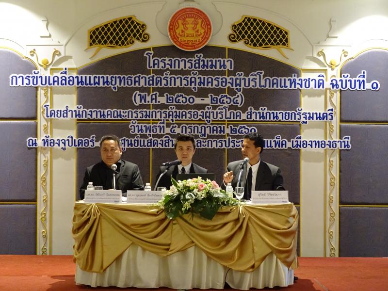 วันที่ 5 กรกฎาคม 2560 นายออมสิน ชีวะพฤกษ์ รัฐมนตรีประจำสำนักนายกรัฐมนตรี ในฐานะประธานกรรมการคุ้มครองผู้บริโภค เป็นประธานในพิธีเปิดโครงการสัมมนาการขับเคลื่อนแผนยุทธศาสตร์การคุ้มครองผู้บริโภคแห่งชาติ ฉบับที่ 1 (พ.ศ.2560 – 2564) ณ ห้องจูปิเตอร์ 4- 5 ศูนย์แสดงสินค้าและการประชุมอิมแพ็ค เมืองทองธานี ภายในงานมีการอภิปราย เรื่องทิศทางเชิงนโยบายและการถ่ายทอดแผนยุทธศาสตร์การคุ้มครองผู้บริโภคแห่งชาติ ฉบับที่ 1(พ.ศ.2560-2564) วิทยากรโดยพลตำรวจประสิทธิ์ เฉลิมวุฒิศักดิ์ เลขาธิการคณะกรรมการคุ้มครองผู้บริโภค นายพิฆเนศ ต๊ะปวง รองเลขาธิการคณะกรรมการคุ้มครองผู้บริโภค และเรื่อง กลไกและแนวทางการขับเคลื่อนแผนยุทธศาสตร์ฯ วิทยากรโดย ม.ร.ว.รณจักร์ จักรพันธ์ ผู้อำนวยการกองจัดทำงบประมาณด้านการบริหารสำนักงบประมาณ ผศ.ยุทธพงษ์ ลีลากิจไพศาล รองคณบดีคณะมนุษย์ศาสตร์และสังคมศาสตร์ ผศ.ดร.วัชรินทร์ อินทรพรหม ผู้เชี่ยวชาญด้านการวางแผนยุทธศาสตร์และการประเมินผล และนายสุวิทย์ วิจิตรโสภา ผอ.สำนักแผนและการพัฒนาการคุ้มครองผู้บริโภค วิทยากรและผู้ดำเนินการอภิปราย
