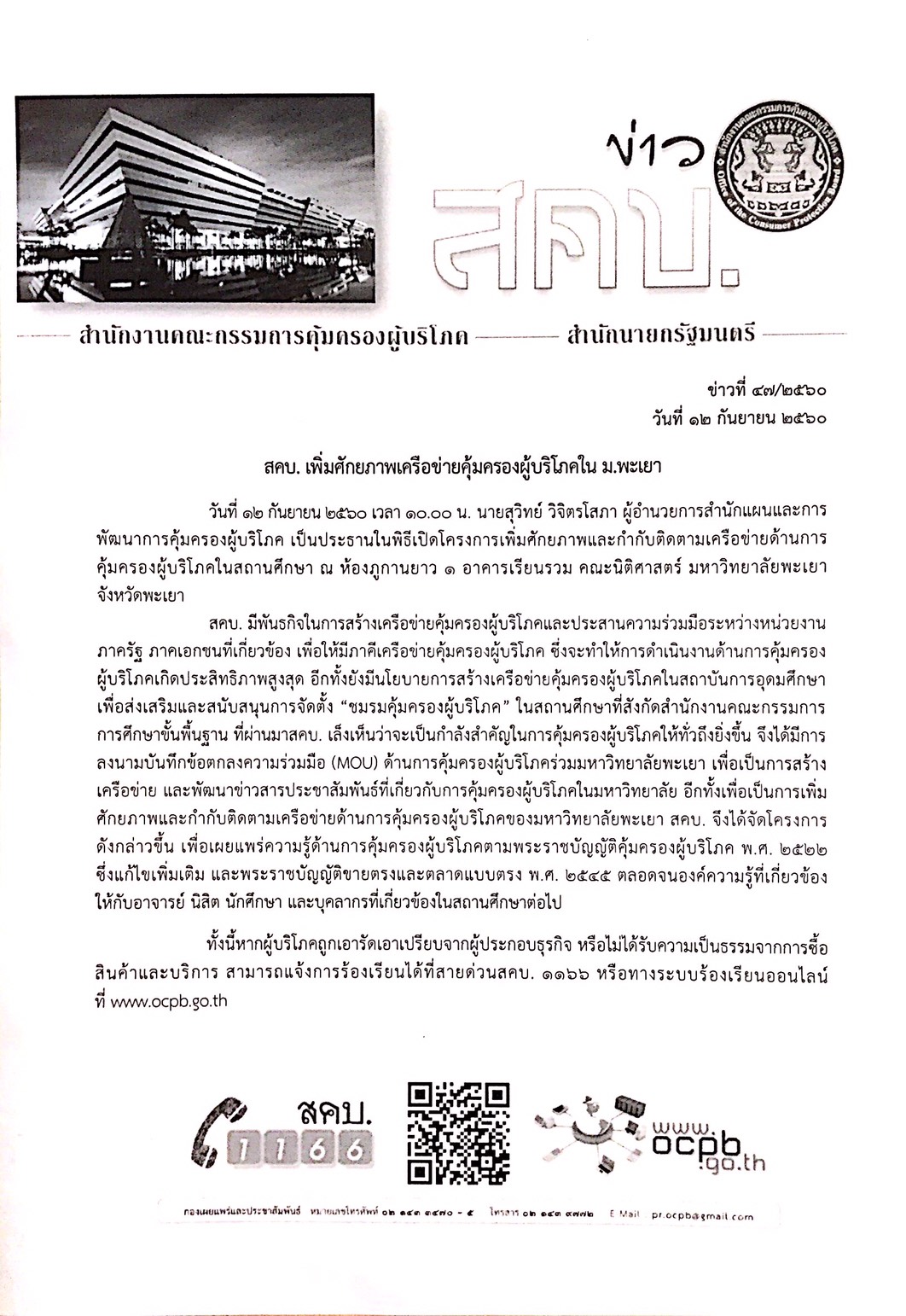 สคบ. เพิ่มศักยภาพเครือข่ายคุ้มครองผู้บริโภคใน ม.พะเยา