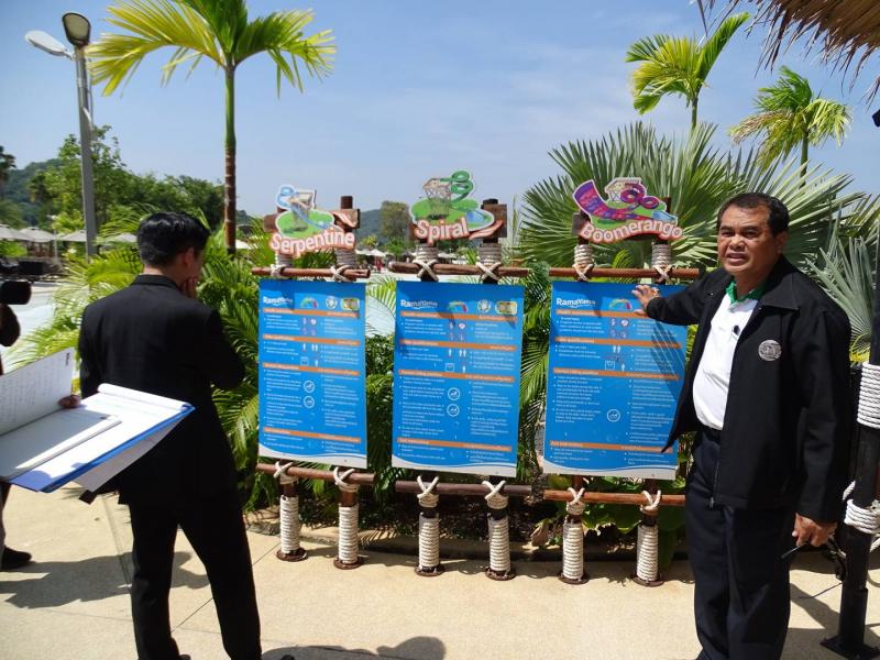 วันศุกร์ที่ 3 พฤศจิกายน 2560 นายพิฆเนศ ต๊ะปวง รองเลขาธิการคณะกรรมการคุ้มครองผู้บริโภค ร่วมกับนายชาญณรงค์ ไวยพจน์ วิศวกรด้านความปลอดภัย มหาวิทยาลัยเกษตรศาสตร์ พร้อมคณะลงพื้นที่เยี่ยมชมเพื่อสำรวจการติดตั้งเครื่องเล่นในสวนน้ำและการให้บริการเครื่องเล่น ณ สวนน้ำรามายณะ (บริษัท อาร์ ดับบลิว พี จำกัด) จังหวัดชลบุรี พร้อมให้คำแนะนำผู้ประกอบการในการดำเนินการเกี่ยวกับเครื่องเล่นและระบบความปลอดภัยให้ได้มาตรฐาน และเป็นการสร้างความปลอดภัยให้ผู้บริโภคในการเล่นเครื่องเล่นครั้งนี้