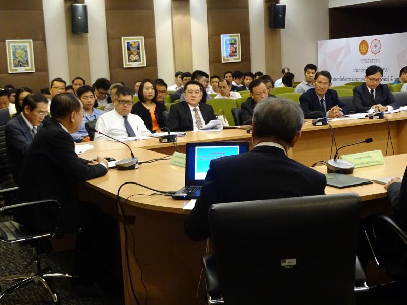 ภาพกิจกรรมโครงการ "ประชาพิจารณ์เพื่อรับฟังความคิดเห็นเกี่ยวกับ (ร่าง) ประกาศคณะกรรมการว่าด้วยสัญญา เรื่อง ให้ธุรกิจให้เช่าซื้อรถยนต์และรถจักรยานยนต์เป็นธุรกิจที่ควบคุฒสัญญา พ.ศ. ..."