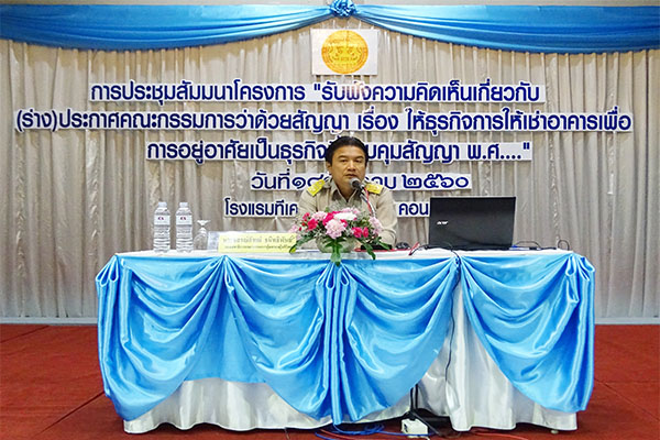 โครงการประชุมสัมมนาโครงการรับฟังความคิดเห็นเกี่ยวกับ (ร่าง) ประกาศคณะกรรมการว่าด้วยสัญญา เรื่องให้ธุรกิจให้เช่าอาคารเพื่ออยู่อาศัยเป็นธุรกิจที่ควบคุมสัญญา ณ 18 ธ.ค. 61