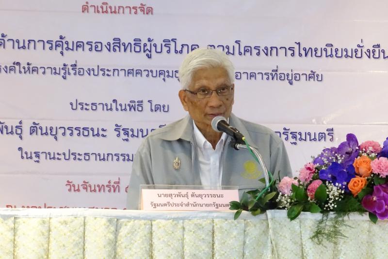 วันที่ 5 มีนาคม 2561 นายสุวพันธุ์ ตันยุวรรธนะ รัฐมนตรีประจำสำนักนายกรัฐมนตรี ในฐานะประธานกรรมการคุ้มครองผู้บริโภค เป็นประธานในพิธีเปิด "โครงการให้ความรู้เรื่องการคุ้มครองสิทธิผู้บริโภค ตามโครงการไทยนิยมยั่งยืน” พร้อมมอบนโยบายการดำเนินงานด้านการคุ้มครองผู้บริโภค ร่วมด้วย พลตำรวจตรีประสิทธิ์ เฉลิมวุฒิศักดิ์ เลขาธิการคณะกรรมการคุ้มครองผู้บริโภค นายณัฐวุฒิ เพ็ชรพรหมศร รองผู้ว่าราชการจังหวัดเพชรบุรี ณ หอประชุมเทศบาลเมืองเพชรบุรี จังหวัดเพชรบุรีภายในงานมีการบรรยายเรื่อง"ความรู้ด้านการคุ้มครองสิทธิผู้บริโภคและการประกอบธุรกิจผ่านระบบออนไลน์” ซึ่งกำลังเป็นประเด็นปัญหาที่ใกล้ตัวประชาชนในปัจจุบันเป็นอย่างยิ่ง นอกจากนี้จะมีการรณรงค์ให้ความรู้เกี่ยวกับประกาศการควบคุมธุรกิจให้เช่าอาคารที่อยู่อาศัย ที่กำลังจะมีผลบังคับใช้ในวันที่ 1 พฤษภาคม 2561 ซึ่งเชื่อว่าจะช่วยแก้ปัญหาการเอาเปรียบเกี่ยวกับธุรกิจการเช่าอาคารเพื่ออยู่อาศัย ที่เป็นปัญหาร้องเรียนมาตลอดผู้เข้าร่วมสัมมนาประกอบด้วยตัวแทนจากหัวหน้าส่วนราชการผู้แทนจากหน่วยงานต่างๆ ที่มีหน้าที่ในการคุ้มครองผู้บริโภคในจังหวัดเพชรบุรี องค์กรปกครองส่วนท้องถิ่น กำนัน ผู้ใหญ่บ้าน ชมรม เครือข่ายอาสาสมัครคุ้มครองผู้บริโภค อาสาสมัคร คปภ. เครือข่ายกองทุนหมู่บ้าน ผู้ประกอบธุรกิจ และประชาชนทั่วไป รวมประมาณ 350 คน