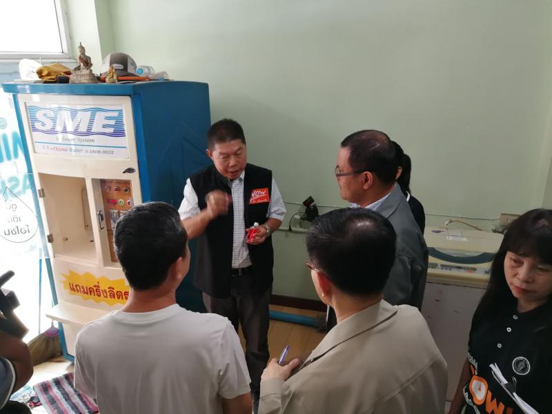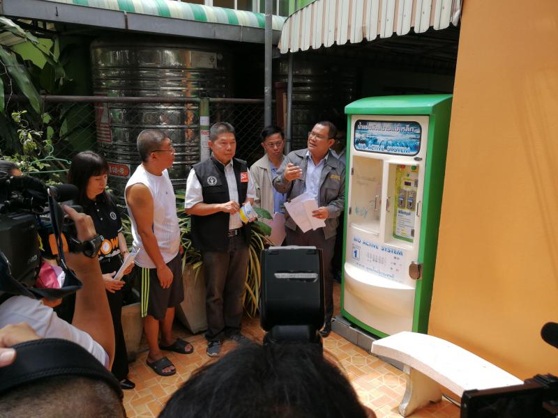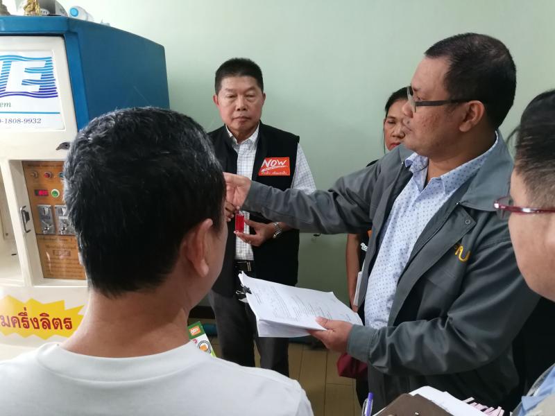 วันที่ 5 พฤษภาคม 2561 พลตำรวจตรี ประสิทธิ์ เฉลิมวุฒิศักดิ์ เลขาธิการคณะกรรมการคุ้มครองผู้บริโภค มอบหมายให้นายฐิตินันท์ สิงหา ผู้อำนวยการกองคุ้มครองผู้บริโภคด้านฉลาก ประชุมหารือร่วมกับนายทวีศักดิ์ เลิศประจำพันธ์ รองผู้ว่าราชการกรุงเทพมหานคร สำนักอนามัยกรุงเทพมหานคร และผู้อำนวยการเขตลาดพร้าว ณ สำนักงานเขตลาดพร้าว กรุงเทพมหานคร พร้อมลงพื้นที่ตรวจสอบตู้น้ำดื่มหยอดเหรียญอัตโนมัติ จากการหารือ พบว่า เขตลาดพร้าวมีตู้น้ำดื่มหยอดเหรียญอัตโนมัติที่มีการตั้งให้บริการประชาชน จำนวน 292 ตู้ โดยมีตู้ที่มาขออนุญาตติดตั้งอย่างถูกกฎหมาย จำนวน 30 ตู้ ส่วนกรณีที่ไม่ได้มาขออนุญาตนั้น เนื่องจากมีปัญหาเกี่ยวกับภาระค่าใช้จ่าย จำนวน 2,000 บาท ในการชำระค่าธรรมเนียมขออนุญาตติดตั้งตู้น้ำดื่มจากกทม. ระหว่างเจ้าของพื้นที่ให้เช่าติดตั้งตู้น้ำดื่มหยอดเหรียญและผู้ประกอบการตู้น้ำดื่มหยอดเหรียญ ซึ่งหากพบว่ายังไม่ดำเนินการมาขออนุญาต ให้สำนักงานเขตลาดพร้าวสั่งผู้ประกอบการหยุดให้บริการตู้น้ำดื่มหยอดเหรียญดังกล่าวแก่ผู้บริโภคทันที พร้อมร่วมลงพื้นที่ตรวจสอบตู้นำดื่มหยอดเหรียญอัตโนมัติ ณ ซอยนาคนิวาส 29 และ ซอยนาคนิวาส 48 เขตลาดพร้าว กรุงเทพมหานคร โดยสุ่มตรวจตู้น้ำดื่มหยอดเหรียญอัตโนมัติ จำนวน 3 แห่ง พบว่า เป็นตู้ที่ได้รับอนุญาตจากสำนักงานเขตลาดพร้าวในการติดตั้งให้บริการน้ำดื่มแก่ผู้บริโภค แต่เมื่อตรวจสอบการฉลากสินค้า พบว่า ปฏิบัติไม่ถูกต้องทั้งหมด เช่น ไม่ระบุ คำเตือน ข้อแนะนำในการใช้ วันเดือนปีที่เปลี่ยนไส้กรอง ชื่อประเภทสินค้า ตามประกาศคณะกรรมการว่าด้วยฉลาก ฉบับที่ 31 (พ.ศ.2553) ลงวันที่ 8 พฤศจิกายน 2553 เรื่อง ให้ตู้น้ำดื่มหยอดเหรียญอัตโนมัติเป็นสินค้าที่ควบคุมฉลาก ซึ่งหากผู้ใดขายสินค้าที่ไม่มีฉลากหรือมีฉลากแต่การแสดงฉลากสินค้าไม่ถูกต้อง ต้องระวางโทษจำคุกไม่เกิน 6 เดือน ปรับไม่เกิน 50,000 บาท หรือหรือทั้งจำทั้งปรับ กรณีเป็นผู้ผลิต สั่งหรือนำเข้าต้องระวางโทษจำคุกไม่ 1 ปี ปรับไม่เกิน 100,000 บาท หรือทั้งจำทั้งปรับ