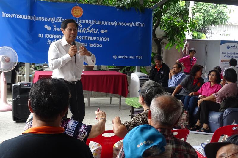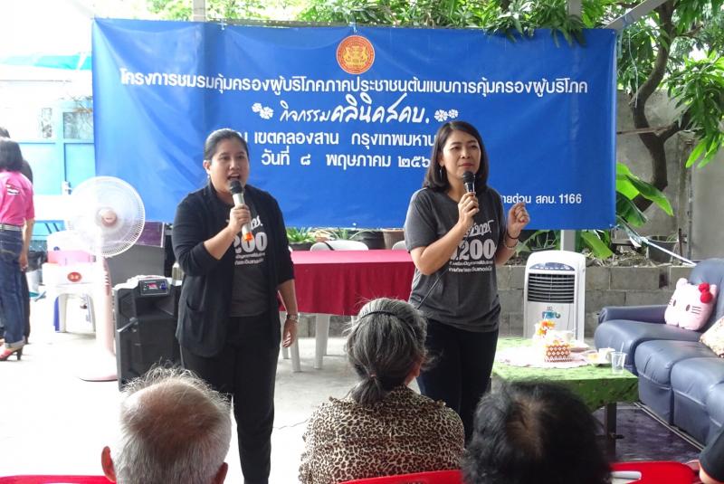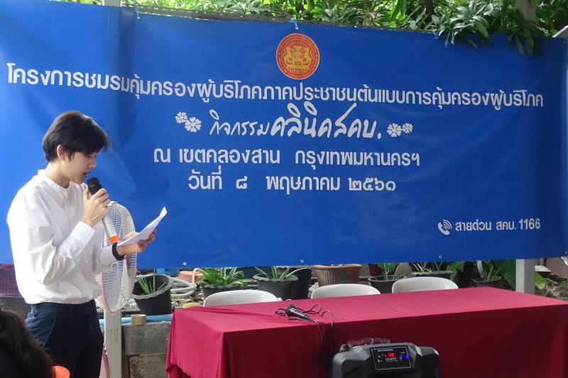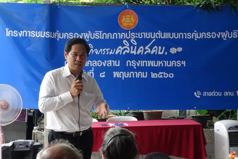 วันที่ 8 พฤษภาคม 2561 สำนักงานคณะกรรมการคุ้มครองผู้บริโภค จัดโครงการชมรมคุ้มครองผู้บริโภคภาคประชาชนต้นแบบการคุ้มครองผู้บริโภค ร่วมกับ สมาพันธ์ชมรมคุ้มครองผู้บริโภคกรุงเทพมหานคร กิจกรรม คลินิค สคบ. ครั้งที่ 1 เขตคลองสาน กรุงเทพมหานคร ภายในงานมีนิทรรศการให้ความรู้ด้านการคุ้มครองผู้บริโภคสู่ชุมชน วิทยากรประกอบด้วยนางสาวปิยะนุช โพธิ์แก้ว นางสาวศศิธร นรินทรางกูร จากคณะกรรมการกิจการกระจายเสียง กิจการโทรทัศน์ และกิจการโทรคมนาคมแห่งชาติ บรรยายเกี่ยวกับการคุ้มครองผู้บริโภคด้านโทรคมนาคม นายคณานุสรณ์ เที่ยงตระกูล ผู้อำนวยการสำนักงานคณะกรรมการกำกับและส่งเสริมการประกอบธุรกิจประกันภัย เขตท่าพระ บรรยายการคุ้มครองผู้บริโภคด้านประกันภัย นางสาวนิรินทร์ทิพย์ อมรรัตนเมธีกุล สำนักอนามัย กรุงเทพมหานคร บรรยายการดูแลภาวะสุขภาพของประชากรและสุขาภิบาลที่ดี และนายภานุวัต พันธุ์วุฒิ นางสาวธัญรัตน์ เพ็งลาภ กรมคุ้มครองสิทธิและเสรีภาพ บรรยายให้ความรู้ความเข้าใจด้านสิทธิและเสรีภาพที่ประชาชนพึงได้รับตามกฎหมาย