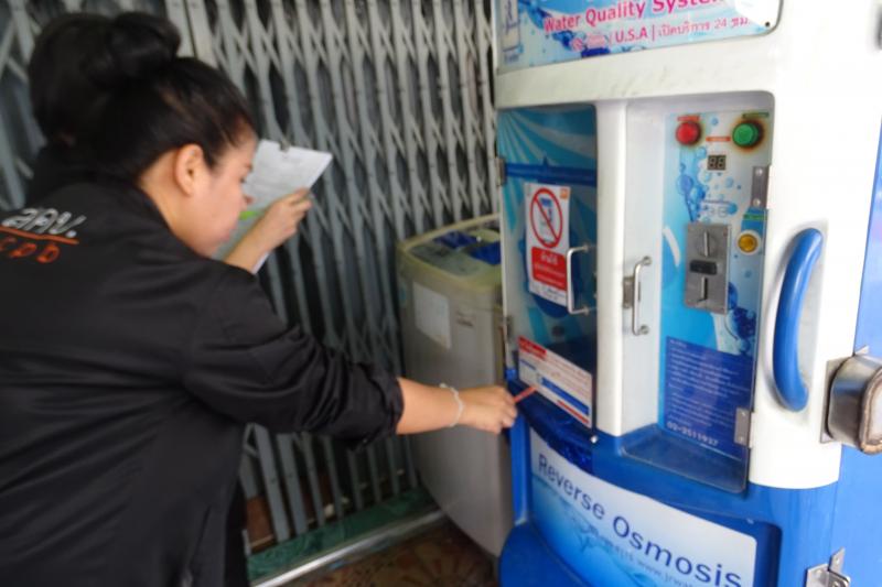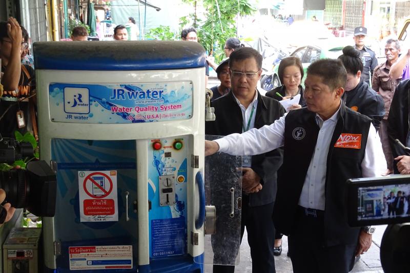สคบ. ร่วมกับ กทม. สำนักอนามัยกทม. และสำนักงานเขตพระนคร ลงพื้นที่ตรวจสอบฉลากตู้น้ำดื่มหยอดเหรียญอัตโนมัติในเขตพระนคร