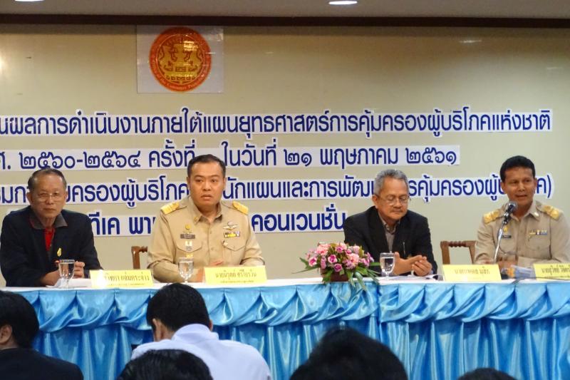วันที่ 21 พฤษภาคม 2561 นายธสรณ์อัฑฒ์ ธนิทธิพันธ์ รองเลขาธิการคณะกรรมการคุ้มครองผู้บริโภค เป็นประธานในพิธีเปิดโครงการติดตามและประเมินผลการดำเนินงานภายใต้แผนยุทธศาสตร์การคุ้มครองผู้บริโภคแห่งชาติ ฉบับที่ 1 (พ.ศ. 2560-2564) ครั้งที่ 1 โดยมีนายสุวิทย์ วิจิตรโสภา ผู้อำนวยการสำนักแผนและการพัฒนาการคุ้มครองผู้บริโภค กล่าวรายงานวัตถุประสงค์ในการจัดงาน ณ โรงแรมทีเค พาเลซ คอนเวนชั่น กรุงเทพมหานครฯ ทั้งนี้เพื่อให้หน่วยงานที่เกี่ยวข้องร่วมกันระดมความคิด แลกเปลี่ยนความเห็นเพื่อให้ไปในทิศทางเดียวกันในการขั[เคลื่อนแผนยุทธศาสตร์การคุ้มครองผู้บริโภคแห่งชาติ ช่วงเช้าเป็นการชี้แจงรายละเอียดของแผนฯ และเวทีเสวนา "ปัญหาการคุ้มครองผู้บริโภคในยุค ไทยแลนด์ 4.0” จากผู้แทนเครือข่ายภาคประชาชน ผู้แทน สบส. และผู้แทนกองคุ้มครองผู้บริโภคด้านสัญญาช่วงบ่าย แบ่งกลุ่มแยกตามรายยุทธศาสตร์ เพื่อติดตามการดำเนินการปี 2560 – 2561 และระดมสมอง ในการบูรณาการการดำเนินงานร่วมกัน (Big project) ในปี 2562 มีหน่วยงานที่เกี่ยวข้องเข้าร่วมประมาณ 30 หน่วยงาน