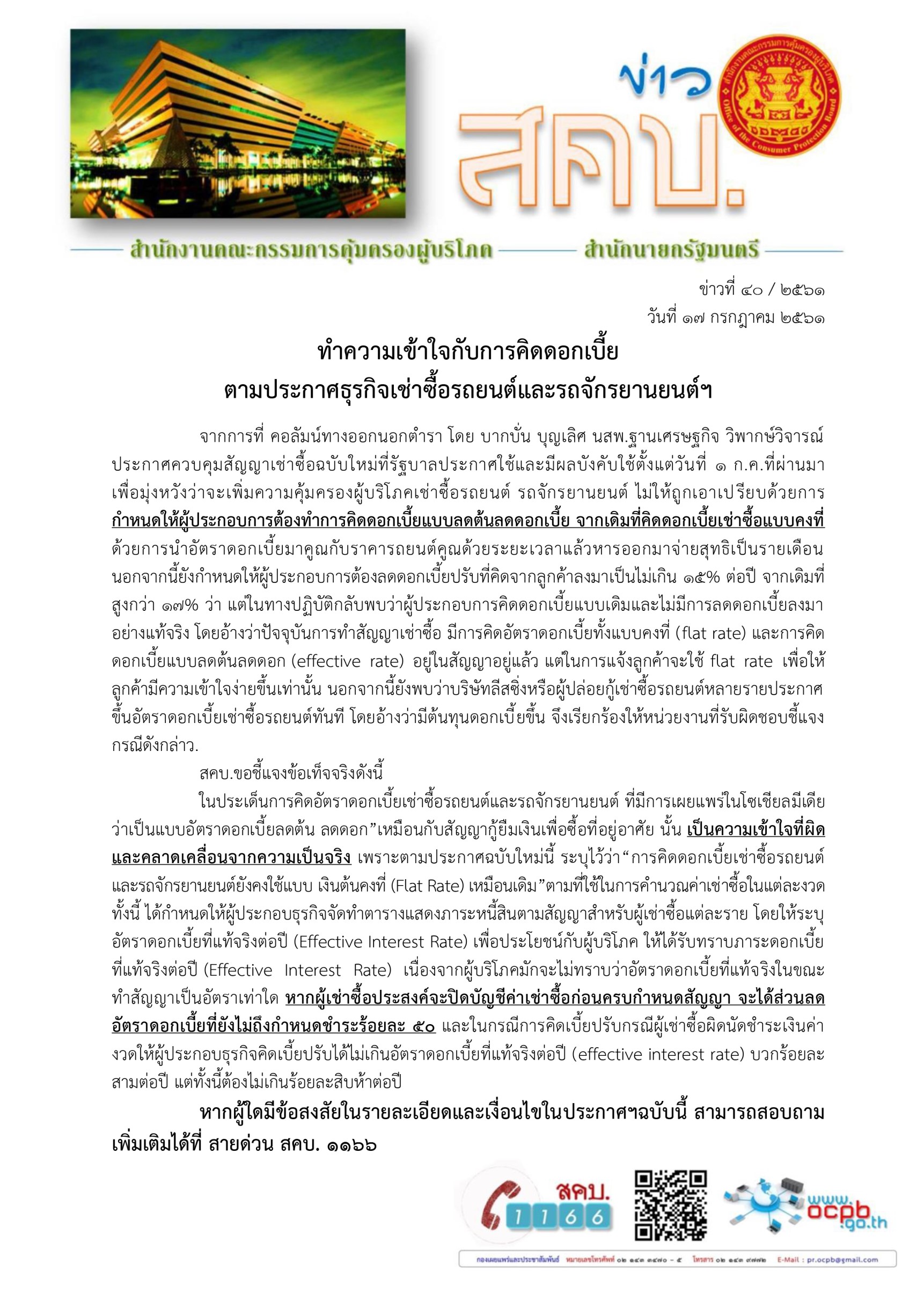 ทำความเข้าใจกับการคิดดอกเบี้ยตามประกาศธุรกิจเช่าซื้อรถยนต์และรถจักรยานยนต์ฯ