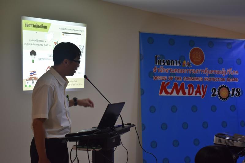 ศูนย์รับเรื่องร้องทุกข์ผู้บริโภค จัดกิจกรรม KM DAY 2018 เรื่อง ร้องเรียนอย่างไรให้ได้ผล บรรยายโดย นายธนาชัย สาธิตวสุธา หัวหน้าศูนย์รับเรื่องราวร้องทุกข์ สคบ. ได้ถ่ายทอดองค์ความรู้เกี่ยวกับแนวทางขั้นตอนและวิธีการให้บริการแก่ประชาชน การร้องทุกข์อย่างถูกต้อง รวมทั้งข้อมูลประกอบการร้องทุกข์ในขั้นตอนและวิธีการต่าง ๆ ให้แก่บุคลากรเจ้าหน้าที่ สคบ. ณ ลานอเนกประสงค์ชั้น 5 สคบ.