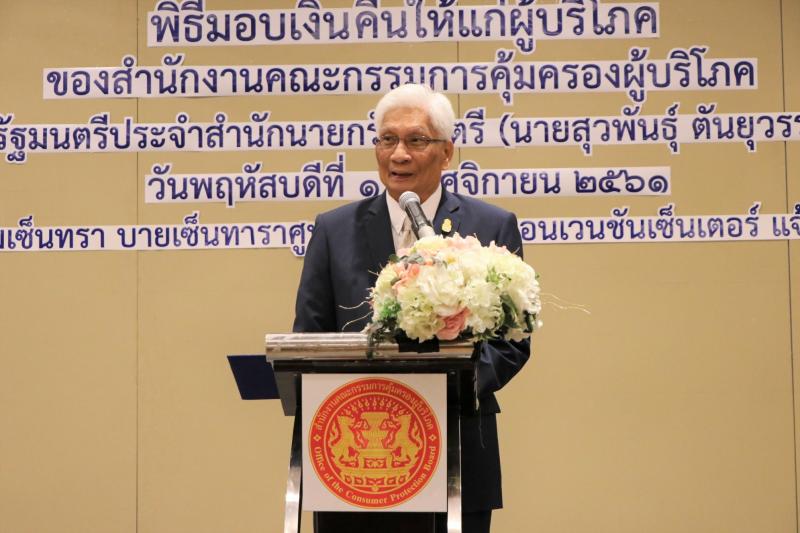 วันที่ 1 พฤศจิกายน 2561 เวลา 14.00 น. นายสุวพันธุ์ ตันยุวรรธนะ รัฐมนตรีประจำ สำนักนายกรัฐมนตรี เป็นประธานในพิธี "มอบเงินตามคำพิพากษาของศาลคืนให้แก่ผู้บริโภค” กรณีเรื่องร้องเรียนบริษัท ไอส์แลนด์วิว จำกัด พร้อมด้วยพลตำรวจตรี ประสิทธิ์ เฉลิมวุฒิศักดิ์ เลขาธิการคณะกรรมการคุ้มครองผู้บริโภค และคณะผู้บริหาร ณ โรงแรมเซ็นทรา บายเซ็นทารา ศูนย์ราชการและคอนเวนชั่นเซ็นเตอรื แจ้งวัฒนะ กรุงเทพมหานคร ต้นปี 2537 ผู้บริโภคประมาณ 250 คน ได้ทำสัญญาจะซื้อจะขายห้องชุดโครงการ จ้าวซันเรสซิเด้นท์ กับบริษัท ไอส์แลนด์วิว จำกัด ซึ่งเป็นอาคารชุดโครงการใหญ่ มีทั้งสิ้น 10 อาคารจะทำการปลูกสร้าง บริเวณ คลองกุ่ม บางกะปิ กรุงเทพมหานคร ซึ่งมีกำหนดเริ่มก่อสร้างเดือนมิถุนายน 2537 และกำหนดเสร็จเดือนกรกฎาคม 2539 แต่เมื่อถึงกำหนดปรากฏว่าโครงการไม่แล้วเสร็จ และได้หยุดการก่อสร้าง เนื่องจากประสบปัญหาทางการเงิน เช่นเดียวกับบริษัทอื่นๆ อีกหลายแห่งในยุคฟองสบู่แตก ทำให้ผู้ร้องได้รับความเดือดร้อน จึงมาร้องเรียนกับ สคบ. เมื่อ พ.ศ. 2541 สคบ. มีหนังสือขอทราบข้อเท็จจริงเกี่ยวกับการดำเนินโครงการฯ ถึง กรมพัฒนาธุรกิจการค้า กระทรวงพาณิชย์ เกี่ยวกับทะเบียนนิติบุคคล และบัญชีรายชื่อผู้ถือหุ้น รงมทั้ง สำนักงานที่ดินกรุงเทพมหานคร สาขาบึงกุ่ม พบข้อมูลน่าสนใจ คือ ได้มีการจำนองโฉนด ไว้กับบริษัท เงินทุนหลักทรัพย์ มหาธนกิจ จำกัด และบริษัทเงินทุนบางกอกเงินทุน จำกัด ซึ่งบริษัททั้งสองแห่งถูกสั่งระงับการดำเนินกิจการไปแล้ว สคบ. ดำเนินการเจรจาไกล่เกลี่ยระหว่างบริษัท ไอส์แลนด์วิวฯ กับกลุ่มผู้เสียหาย แต่ไม่สามารถเจรจาตกลงกันได้ เนื่องจากบริษัทฯ จะคืนเงินให้กับผู้ร้องเรียนทุกราย เป็นจำนวนเพียงครึ่งหนึ่งเท่านั้น คณะกรรมการคุ้มครองผู้บริโภคมีมติในการประชุมครั้งที่ 4/2541 วันที่ 6 สิงหาคม 2541 ให้ดำเนินคดีแพ่งกับบริษัท ไอส์แลนด์วิว จำกัด เพื่อบังคับให้คืนเงินที่ได้รับชำระไปแล้วทั้งหมด พร้อมทั้งดอกเบี้ยตามกฎหมาย ในช่วงที่ผ่านมา มีผู้บริโภคจำนวนมากที่ได้รับความเดือดร้อน จากการที่ โครงการ จ้าวซันเรสซิเด้นท์ มีปัญหาไม่สามารถก่อสร้างได้แล้วเสร็จซึ่งมีการยื่นเรื่องร้องเรียนมายัง สคบ.เป็นระยะ โดยคดีสุดท้ายที่ศาลแพ่งมีคำพิพากษาให้ บริษัท ไอส์แลนด์วิว จำกัด ชดใช้เงินคืนให้ผู้บริโภค คือเมื่อเดือนพฤษภาคม พ.ศ.2560 ในขณะเดียวกัน กรมบังคับคดีได้ดำเนินการขายทรัพย์สินของบริษัทฯ มาตลอดช่วงระยะเวลา แต่ด้วยความที่เป็นโครงการใหญ่ การขายสินทรัพย์มูลค่าสูงจึงเป็นไปได้อย่างย