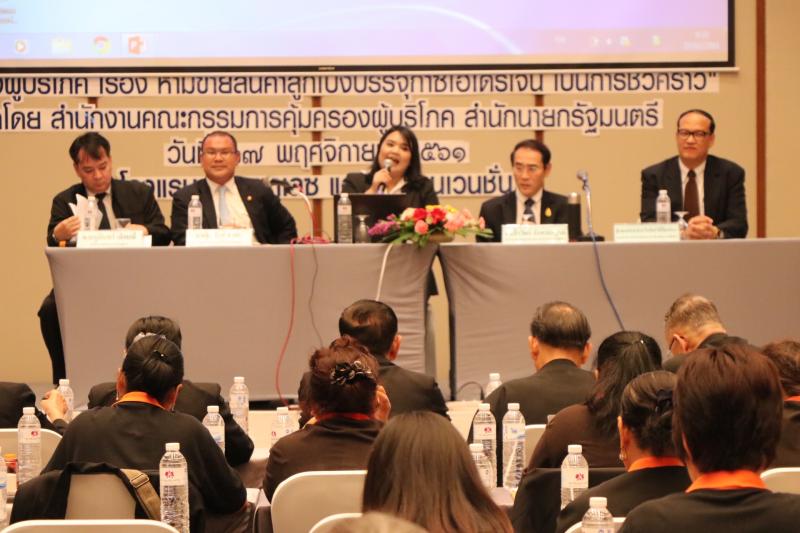 วันที่ 27 พฤศจิกายน 2561 พลตำรวจตรี ประสิทธิ์ เฉลิมวุฒิศักดิ์ เลขาธิการคณะกรรมการคุ้มครองผู้บริโภค เป็นประธานเปิดโครงการรับฟังความคิดเห็นเกี่ยวกับร่างคำสั่งคณะกรรมการคุ้มครองผู้บริโภค ที่ ../.... เรื่อง ห้ามขายสินค้าลูกโป่งบรรจุก๊าซไฮโดรเจน เป็นการชั่วคราว ณ โรงแรม ทีเค พาเลซ แอนด์ คอนเวนชั่น ถนนแจ้งวัฒนะ กรุงเทพมหานคร ปัจจุบันมีผู้ประกอบธุรกิจนำสินค้าลูกโป่งบรรจุก๊าซไฮโดรเจนมาจำหน่ายในงานเทศกาล งานวันเกิด งานรับปริญญา งานมหกรรมกีฬา งานรื่นเริง และงานพิธีต่างๆ ซึ่งที่ผ่านมาปรากฏเป็นข่าวทางสื่อเกี่ยวกับเหตุการณ์ลูกโป่งบรรจุก๊าซไฮโดรเจนระเบิดหลายครั้ง ส่งผลให้เกิดความเสียหายต่อร่างกายและทรัพย์สิน สคบ. เล็งเห็นว่าสินค้าดังกล่าวเป็นสินค้าที่อาจเป็นอันตรายแก่ผู้บริโภค จึงมีความจำเป็นที่จะให้ผู้บริโภคได้รับความปลอดภัยจากสินค้าชนิดนี้ สคบ.จึงเห็นควรจัดให้มีกระบวนการมีส่วนร่วมรับฟังความคิดเห็นในการพิจารณาร่างคำสั่งคณะกรรมการคุ้มครองผู้บริโภค เพื่อรับฟังความคิดเห็นจากผู้มีส่วนเสีย เช่น ประชาชน ผู้ประกอบธุรกิจ ตลอดจนหน่วยงานภาครัฐที่เกี่ยวข้อง เพื่อนำไปสู่การพิจารณาออกคำสั่งคณะกรรมการคุ้มครองผู้บริโภค ต่อไป