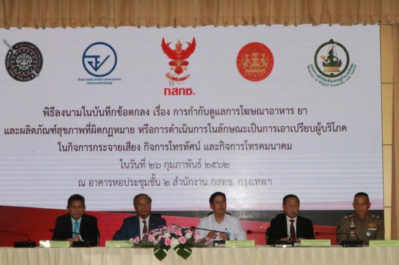 สคบ. กสทช. อย. ดีอี บก.ปคบ. ลงนามบันทึกข้อตกลง ผนึกกำลังกำกับดูแลโฆษณาอาหาร ยา ผลิตภัณฑ์ผิดกฎหมายหรือการดำเนินการในลักษณะเป็นการเอาเปรียบผู้บริโภค